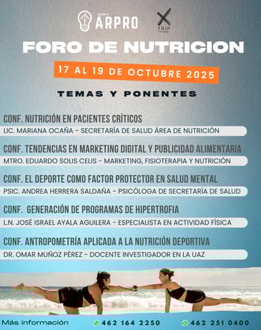 El Foro Nacional de Nutrición es un encuentro académico y profesional que reúne a estudiantes, docentes y especialistas en el área de la nutrición de todo el país. Se llevará a cabo en Puerto Vallarta, Jalisco, del 17 al 19 de octubre de 2025, ofreciendo conferencias y espacios de networking en un ambiente único frente al mar.